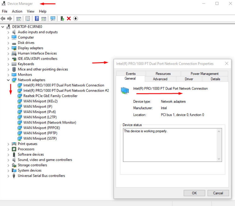 Intel(R) PRO/1000 PT Dual Port Network Gigabit Ethernet 10/100/1000