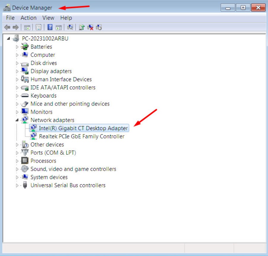 Intel(R) Gigabit CT Desktop Adapter Gigabit Network Connection
