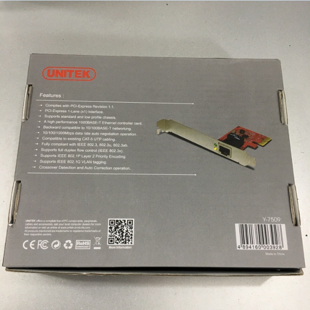Card Mạng UNITEK Y-7509 10/100/1000 PCI-E NIC Card Network