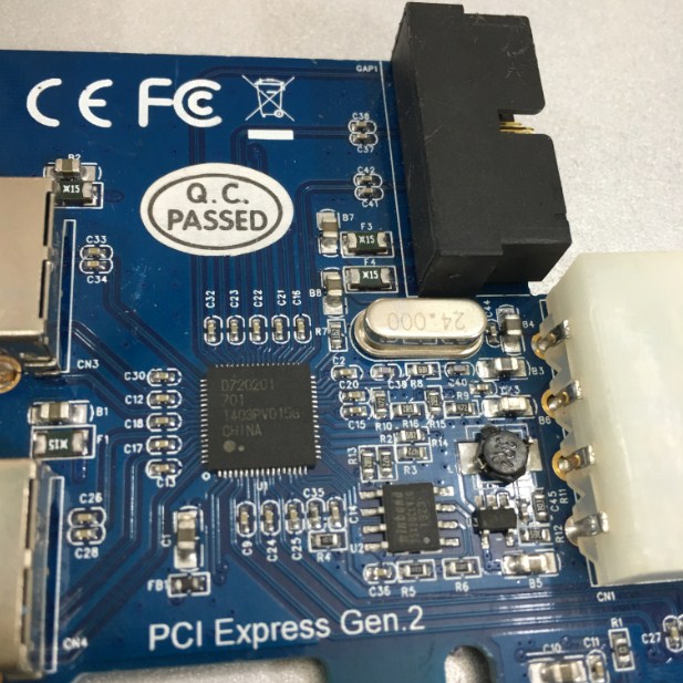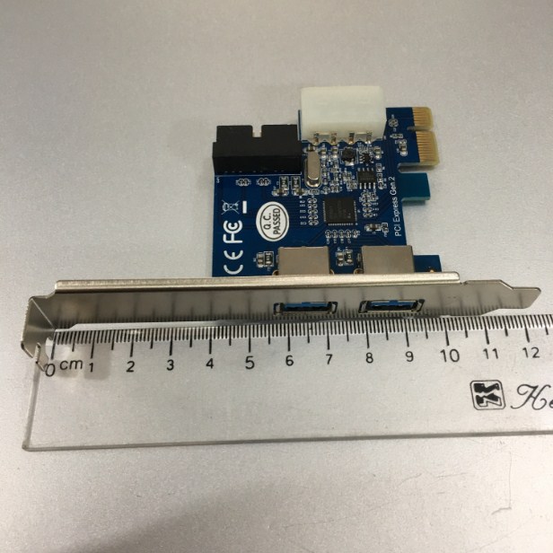 Card PCI Express to 2 Port USB3.0 Super Speed 5Gbps KCC-REI-SRT-ECU32D-R2 Chíp NEC D720201-701 For Computer Desktop MT tương thích với PCI Express x1, x2, x4, x8, x16 và khe cắm card màn hình x16. Đa số các bo mạch chủ hiện nay không được trang bị với các cổng nối tiếp hoặc chỉ có một cổng nối tiếp. Với bảng nối tiếp KCC-REI-SRT-ECU32D-R2 PCI Express, người dùng có thể thêm 2 cổng USB nối tiếp vào hệ thống cho phép người sử dụng các thiết bị nối tiếp thêm trên cổng USB.…..Do đặc thù nên card không cắm được cho cây Desktop SFF không thường, vì thanh chặn Computer Desktop MT PC Card dài 12 Cm trong khi PC Desktop SFF thông thường thanh chặn Card dài 8 Cm