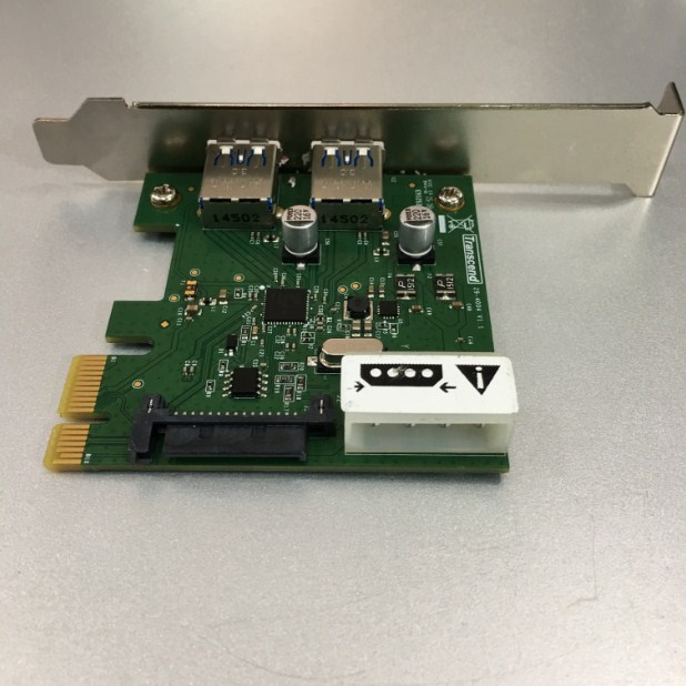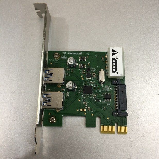 Card PCI Express to 2 Port USB3.0 Super Speed 5Gbps Transcend TS-PDU3 Chíp NEC D720202-701 For Computer Desktop MT tương thích với PCI Express x1, x2, x4, x8, x16 và khe cắm card màn hình x16. Đa số các bo mạch chủ hiện nay không được trang bị với các cổng nối tiếp hoặc chỉ có một cổng nối tiếp. Với bảng nối tiếp TS-PDU3 PCI Express, người dùng có thể thêm 2 cổng USB nối tiếp vào hệ thống cho phép người sử dụng các thiết bị nối tiếp thêm trên cổng USB.…..Do đặc thù nên card không cắm được cho cây Desktop SFF không thường, vì thanh chặn Computer Desktop MT PC Card dài 12 Cm trong khi PC Desktop SFF thông thường thanh chặn Card dài 8 Cm