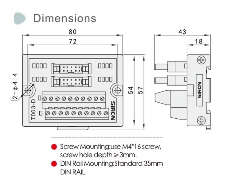 Cầu Đấu Siron T003-D 20 Pin MIL to 2 Port IDC Soket 10 Pin 2.5mm Terminal Block PLC Programming Screw DIN Rail Terminal Block