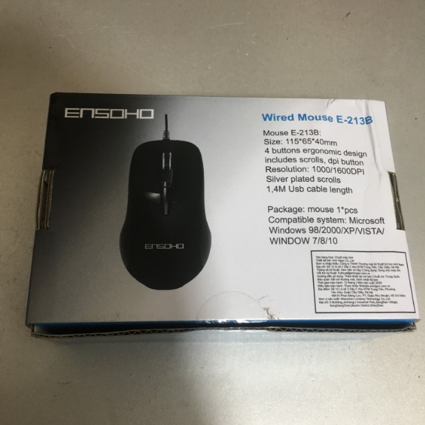 Chuột Quang Có Dây ENSOHO E-213B Black Giao Tiếp Cổng USB Mouse Length 1.5M