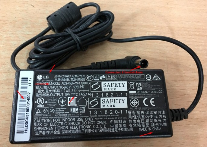 Item Name: LG 19V 2.1A 40W ADS-45SN-19-3 19040G 19V 2.1A 40W