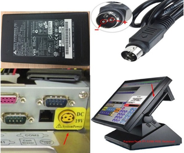 Chuyển nguồn máy bán hàng tự động Partner pos terminal PT-6900 PT-5700 5800 PT-6910 Adapter 19V 4.7A Connector Size 3Pin 10mm Mini Din