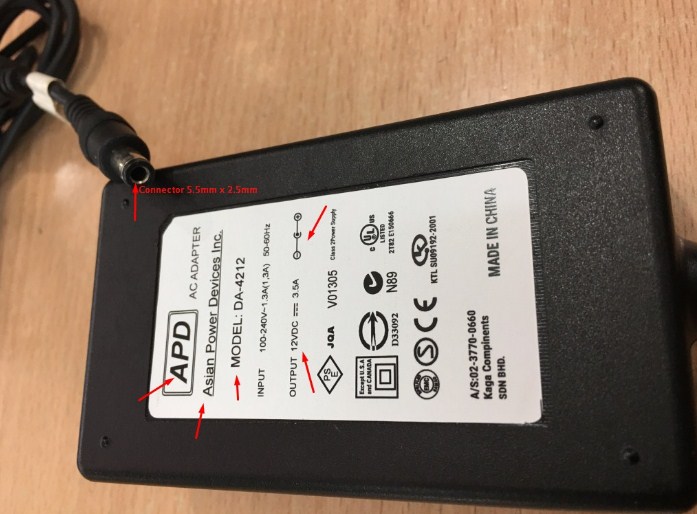 Chuyển nguồn máy chấm công kiểm soát cửa vân tay và mật khẩu FingerTec AC900 Adapter DA-4212 12V 3.5A 42W Connector 5.5mm x 2.5mm