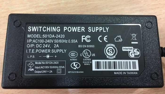 Bộ chuyển nguồn chính hãng chất lượng cao Intertek 501DA-2420 24V 2A 48W sản xuất TAIWAN được dùng cho nhiều thiết bị dùng điện áp DC 24V 2A 48W như các dòng máy quét mã vạch dùng trong công nghiệp thường dùng công nghệ laser đa tia, hoặc chụp ảnh với độ chụp rộng Camera barcode reader