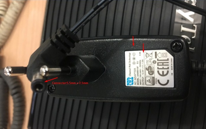 Nguồn điện cấp cho thiết bị: DC Connector Size 5.5mm x 2.5mm