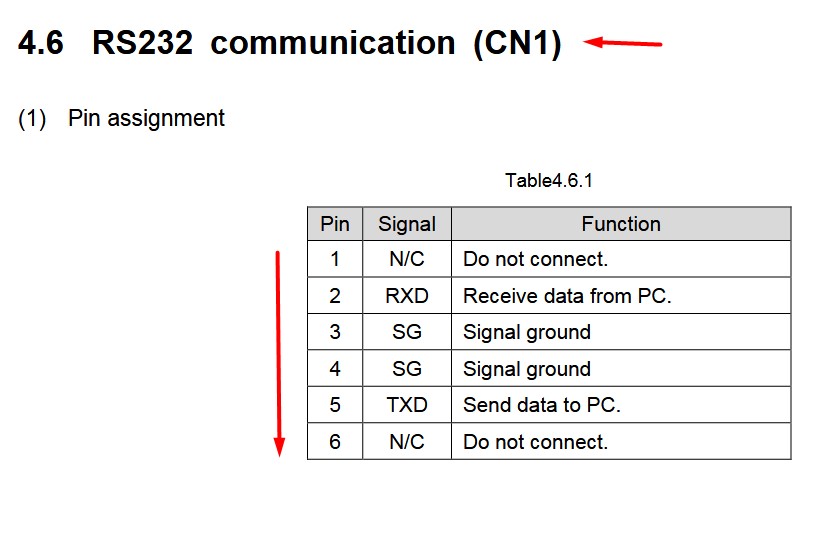 RS232 communication (CN1)