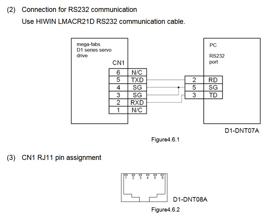 D1 Servo Drive Connection for RS232 communication