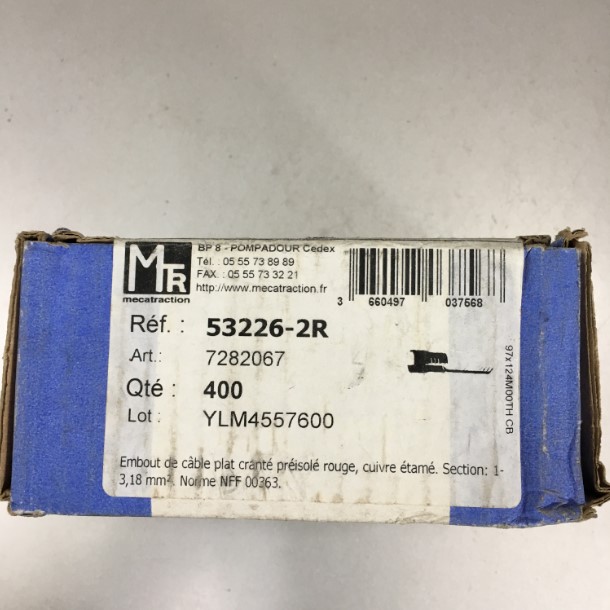 Đầu Cốt Cắm Dẹt Cosse Solderless Crimp Blade Terminal Chất Lượng Cao Mecatraction 53226-2R NFF 00363 Section 1 - 3.18 mm² Colour Red Dimensions Size 3.9mm E-Cu 400 PCS/Box