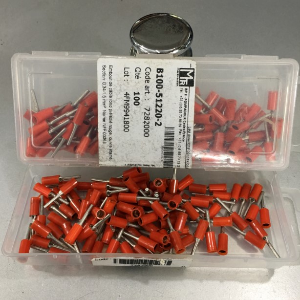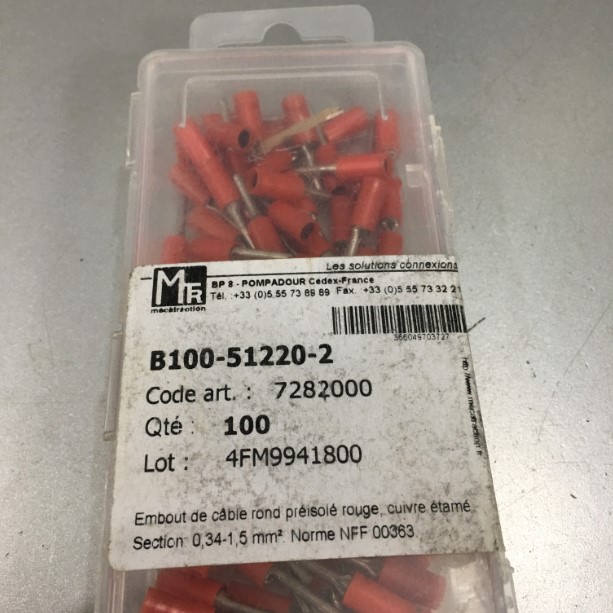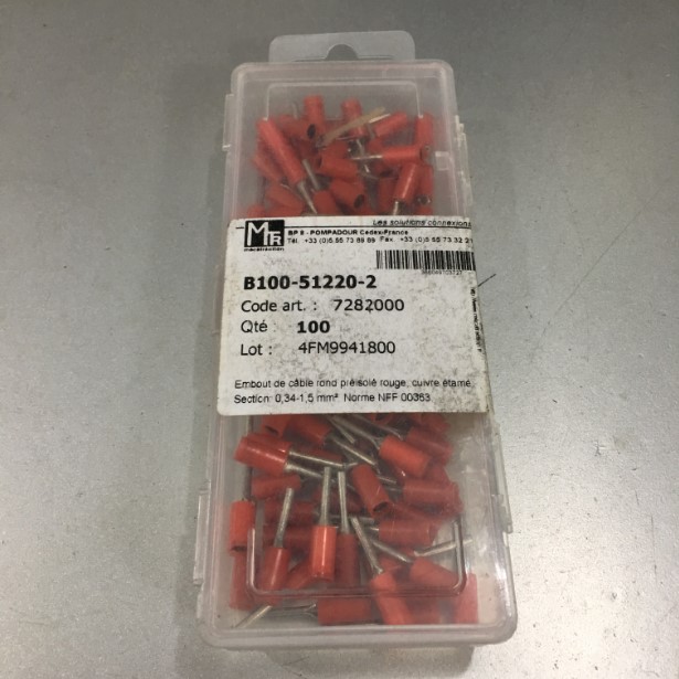 Đầu Cốt Dạng Kim Đặc Cosse Solderless Crimp Terminal Chất Lượng Cao Mecatraction B100-51220-2 NFF 00363 Section 0.34 - 1.5 mm² Colour Red Contact tip 1.9 mm E-Cu 100 PCS/Box