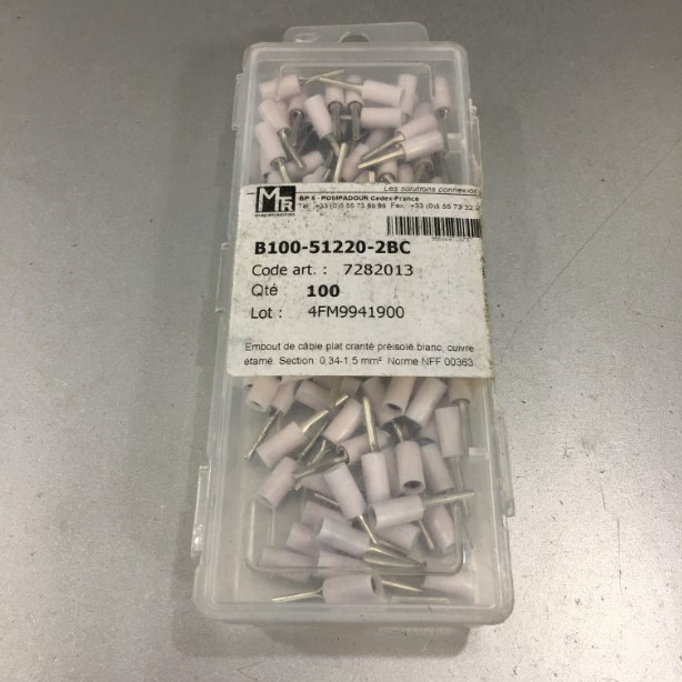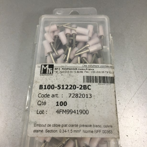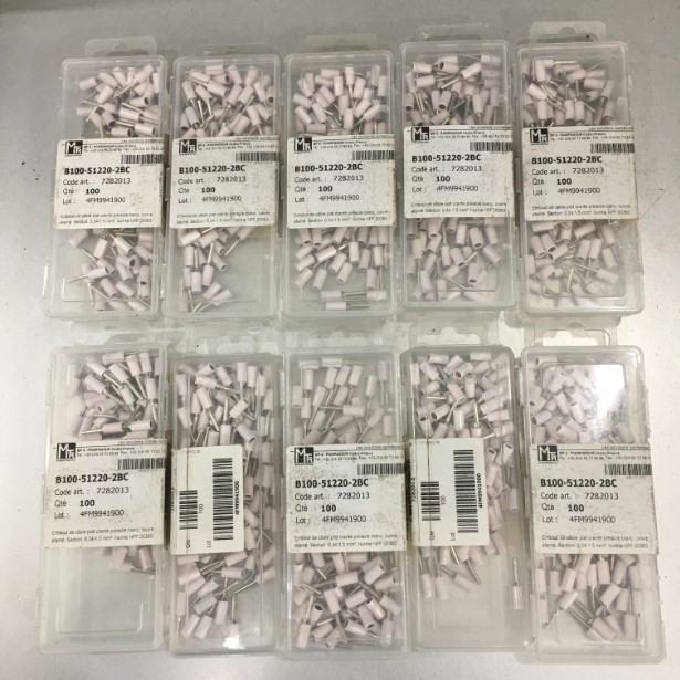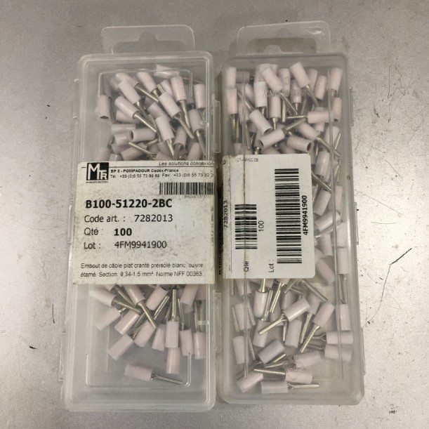 Đầu Cốt Dạng Kim Đặc Cosse Solderless Crimp Terminal Chất Lượng Cao Mecatraction B100-51220-2BC NFF 00363 Section 0.34 - 1.5 mm² Colour White Contact tip 1.9 mm E-Cu 100 PCS/Box
