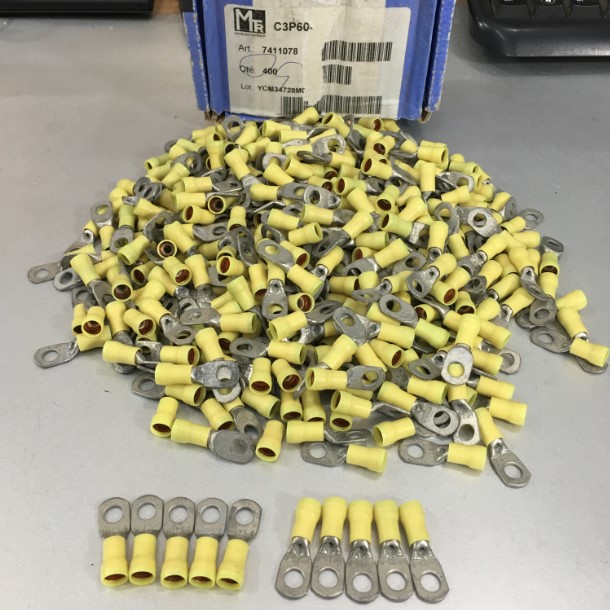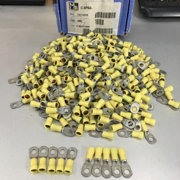 Đầu Cốt Hạ Thế Cosse Solderless Crimp Ring Terminal Chất Lượng Cao Mecatraction C3P60-4 M6 Stud Size to 2.6 - 6.0 mm² Wire Size Colour Yellow E-Cu 100 PCS/Box