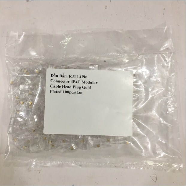 Loại sản phẩm: Đầu Bấm Điện Thoại RJ11 4Pin Connector 4P4C Modular For hệ thống viễn thông, máy ATM, tổng đài điện thoại, điên thoạn bàn, điện thoại IP, điện thoại VoIP, diện thoại hội nghị Polycom, cáp điều khiển PLC, truyền số liệu giữa Computer và thiết bị dùng kết nối chuẩn RJ11