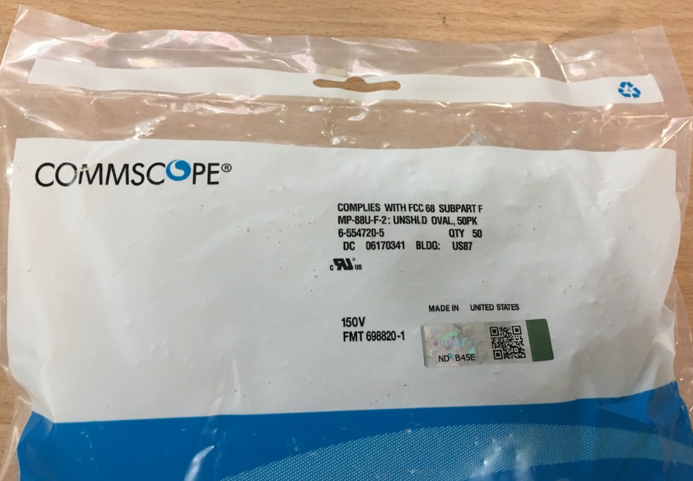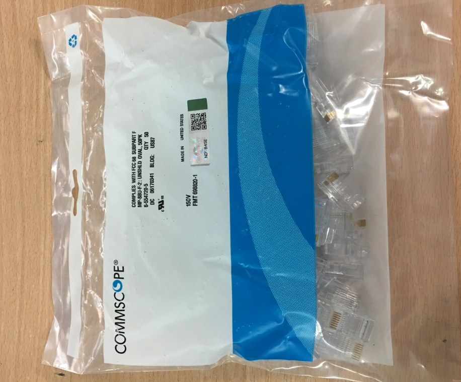 Đầu Bấm Mạng MODULAR PLUG RJ45 UTP CAT6 COMMSCOPE MP-88U-F-2 6-554720-5 QTY 100 pcs