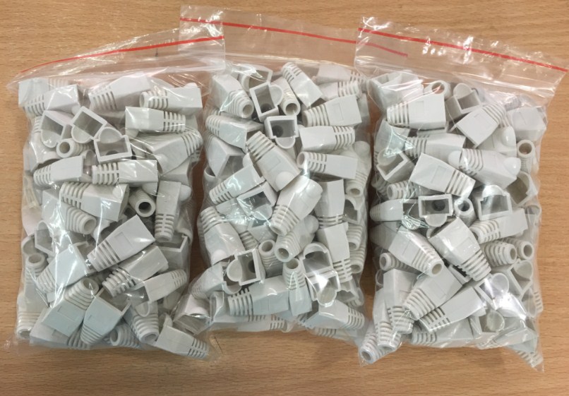 Đầu Boot color chụp dây mạng cat5/cat6 RJ45 Rubber Boot Packs For Network / Patch Cables (100PCS) GREY Đầu bọc bằng cao su mềm dùng cho rắc cắm RJ45 CAT3 /CAT5 / CAT5E / CAT6 có nhiều mầu khác nhau xám, xanh dương, đỏ, xanh lá cây và màu vàng để đơn giản hóa cho kỹ thuật IT theo dõi phân bố từng modular Network. Một túi 100 cái |