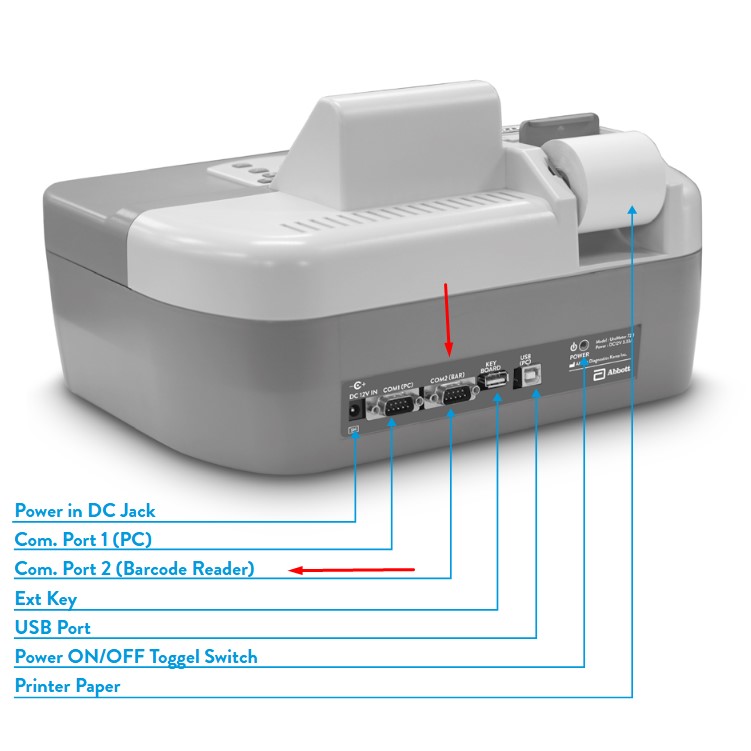 - Connect to COM2 to use the serial (RS232C) type barcode reader.