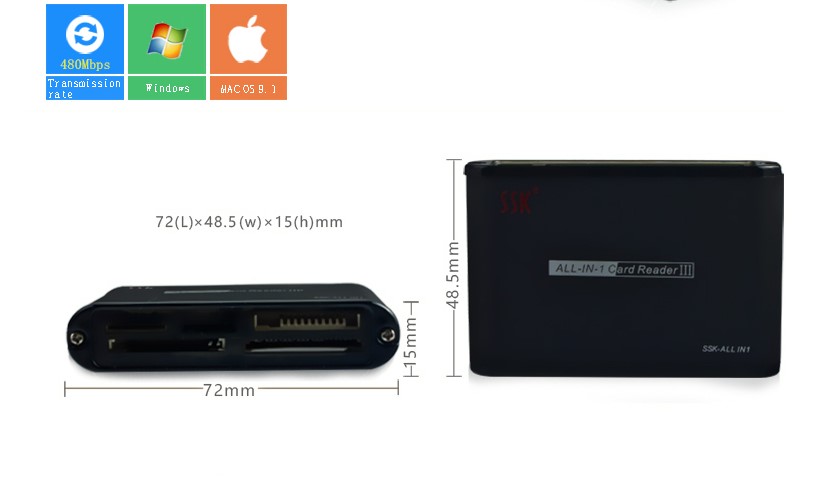 Đầu Đọc Thẻ SSK SCRM025 All-in-one Aluminum Alloy USB 2.0 Cable Dài 1.3M CF SD TF MS M2 XD Card Reader For Desktop PC Laptop