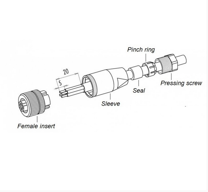 Female connector M12-A 4-pin screw terminal connection straight ø4-6mm