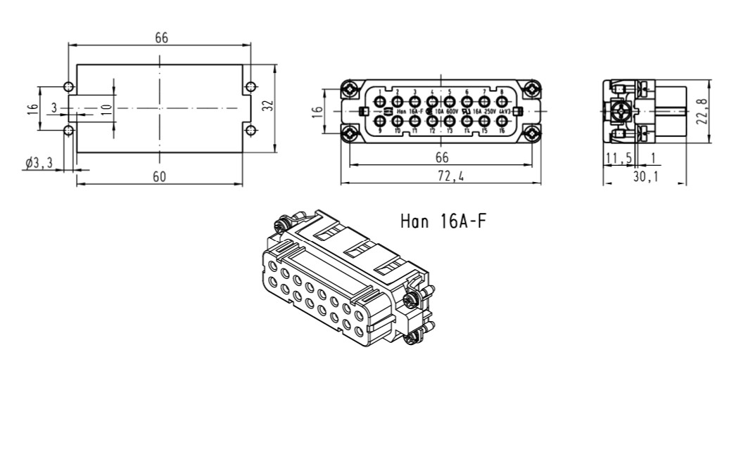 HARTING Han 16A-F Drawing