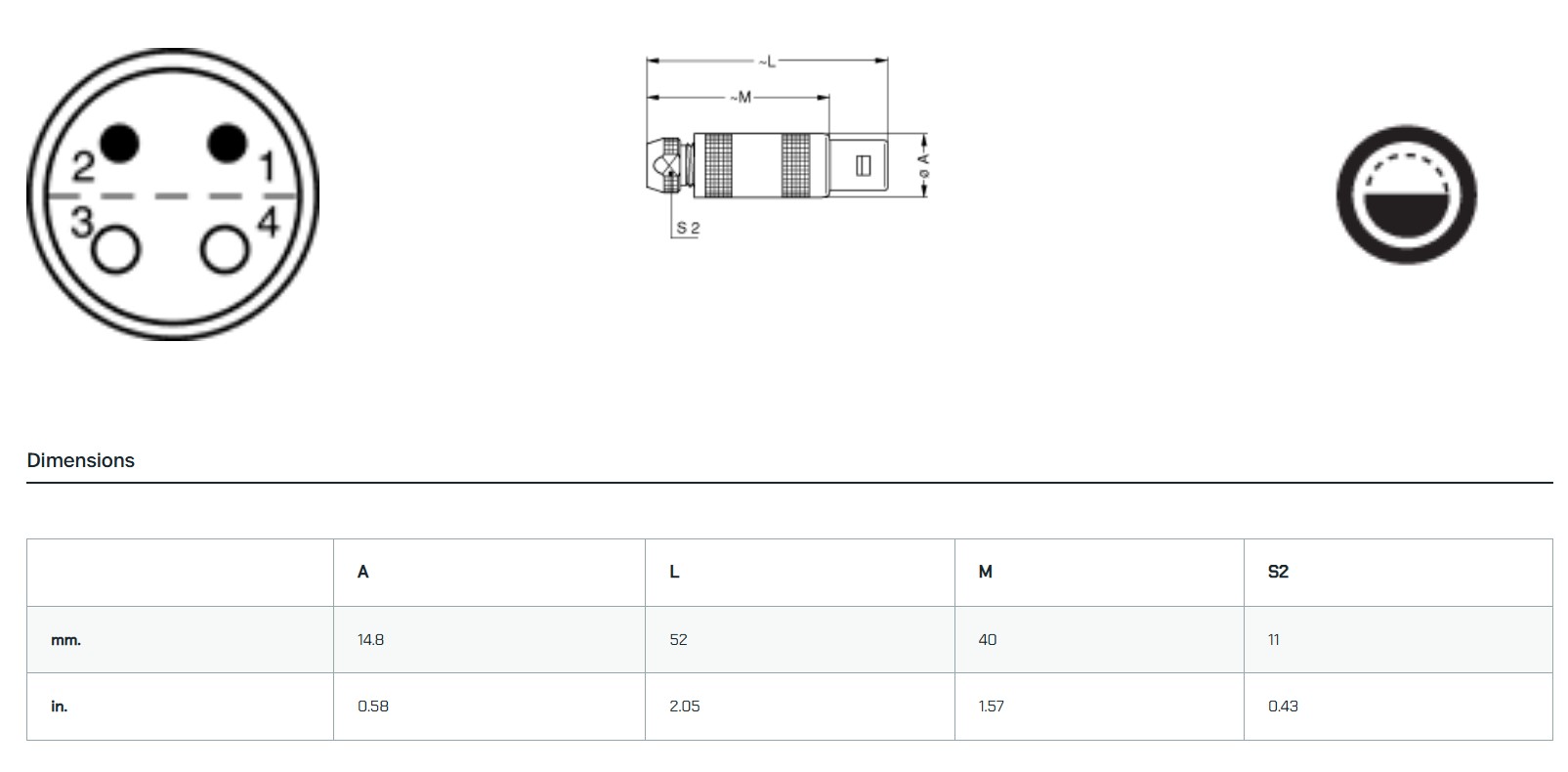 Max. Solid Conductor: 0.34 mm^2 (AWG 22)
