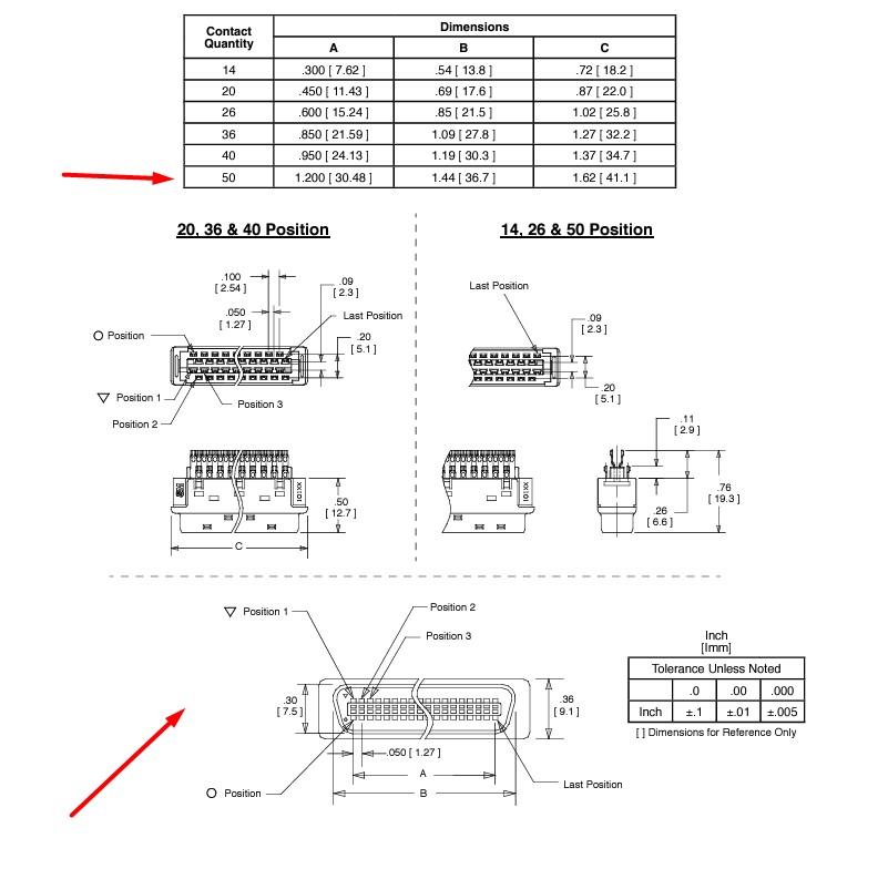 Connector 50 Core Pitch 1.27mm MDR 50 Pin Male