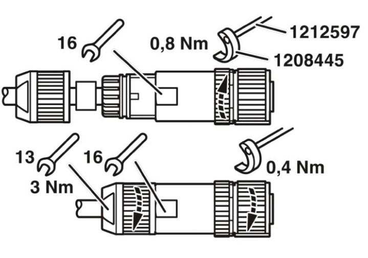 Push-lock spring connection, knurl material: Zinc die-cast, nickel-plated, external cable diameter 4 mm ... 8 mm