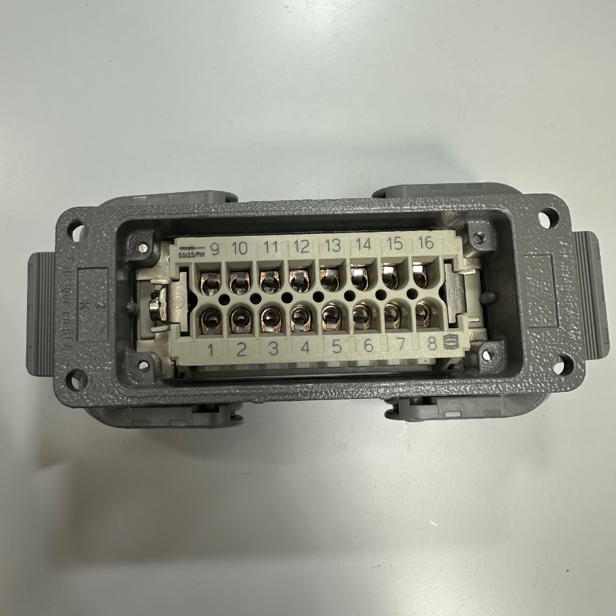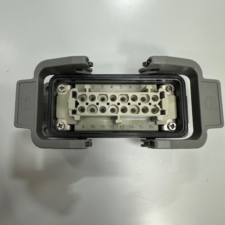 Đầu Jack Harting Han 16 E-F Connector HDC 16 Pin Female + PE 16A 500V 6KV3 For Industrial Power Cable