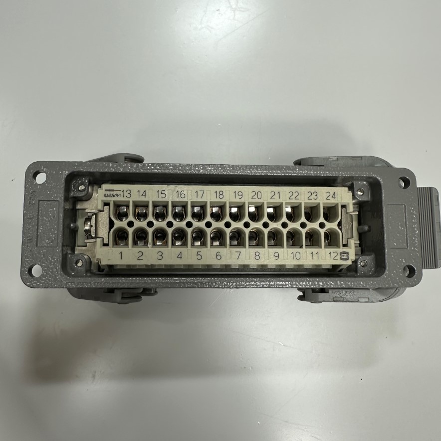Đầu Nối Điện Công Nghiệp Jack HARTING Han 24 E-F Connector HDC 24 Pin Female + PE 16A 500V 6KV3 + Panel HARTING