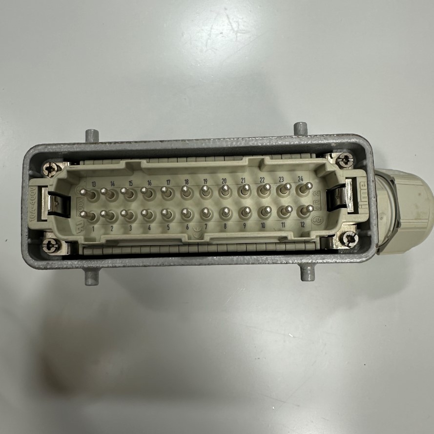Đầu Nối Điện Công Nghiệp Jack ILME Connector HDC 24 Pin Male + PE 16A 400V + Panel Entry Hood