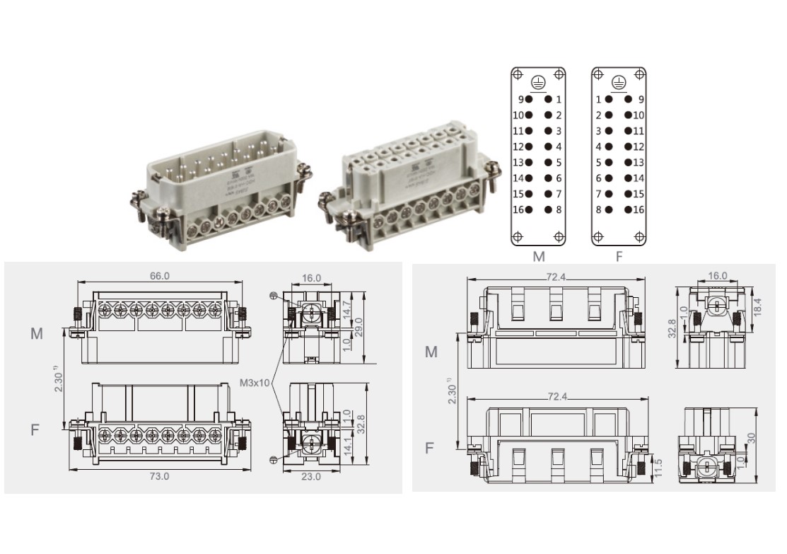 Đầu Nối Điện Công Nghiệp SIBAS HDC-HA-016-M/F 16A/250V/4KV/3 16 Pin Male + Female Connector