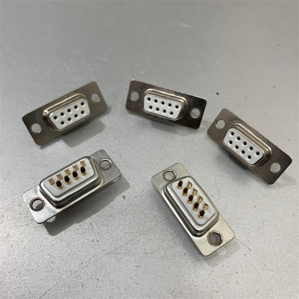 Đầu Rắc Hàn Cổng RS232 Com 9 Chân Âm Gold Plated DB9 2 Rows White Female 9 Way Solder Connector Socket Plug