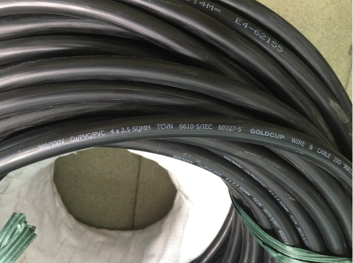 Thiên trường có bán lẻ số M cáp Goldcup bọc nhựa PVC 4x2.5mm2 300/500V Cu/PVC mà khách hàng cần theo độ dài.