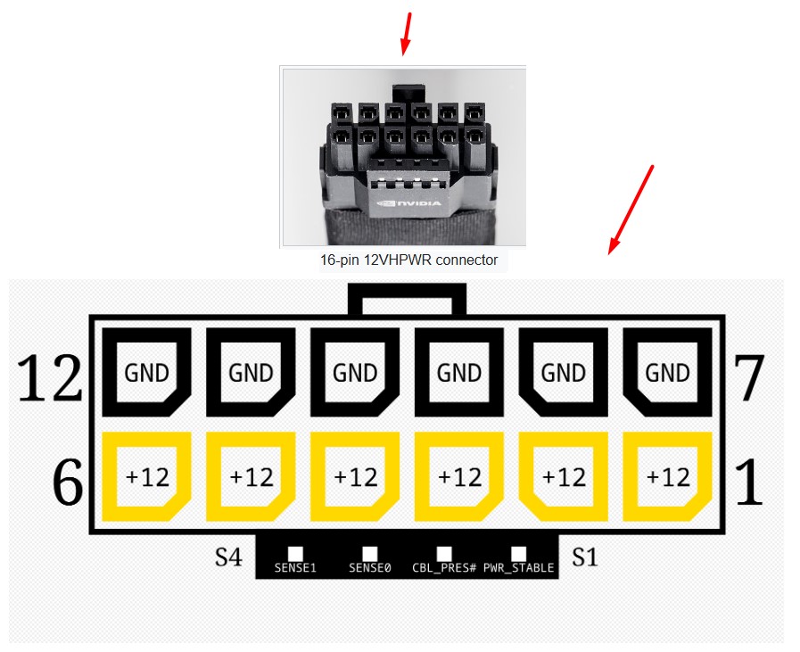 Connector 1: Right Angle 600W PCIE 5.0 12VHPWR (16 Pin / 12+4) Male (12 Pin Connector Power 3.0mm pitch)