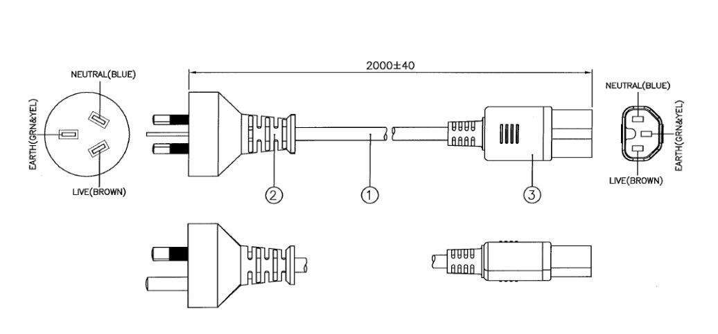 Dây nguồn chính hãng 37-1157-01 PRC3 C15M Australia & China AC Power Cord AS3112 IEC60320 IEC C15 10A 250V 3X1.0mm length 2.5M. Thường được sử dụng cho các thiết bị nhiệt độ cao, đầu cắm IEC60320-C15 là một đầu nối 3 nhánh âm (nữ) có thêm rãnh chữ U ở đầu cắm thường được sử dụng ở đầu dây nguồn của máy tính và thiết bị mạng Cisco, ấm đun nước, máy khuấy từ phòng thí nghiệm. Ổ cắm này có định mức tối đa là 10A với 16-18AWG và 13A với 14-16AWG điện áp tối đa là 250V