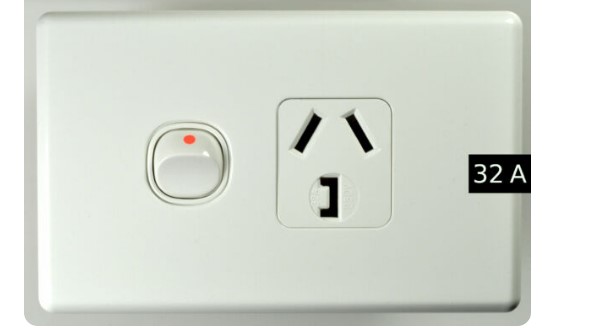 The 32 A outlet has a sideways “U” shaped Earth pin and wider Line and Neutral pins.