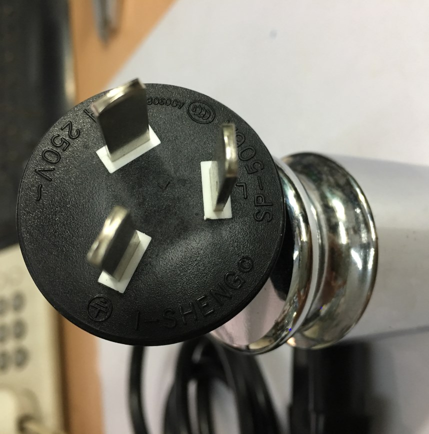 Phích cắm điện: 3 chân dẹt tam giác có tiếp địa