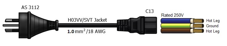 Loại sản phẩm: Dây Nguồn 3 Chân Dẹt Tam Giác Có Tiếp Địa I-SHENG SP-502B IS-14N AC Power Cord Australia & China GB2099 to C13 10A 250V 3Gx0.75mm² H05VV-F Cable OD 6.7mm Length 1.5M