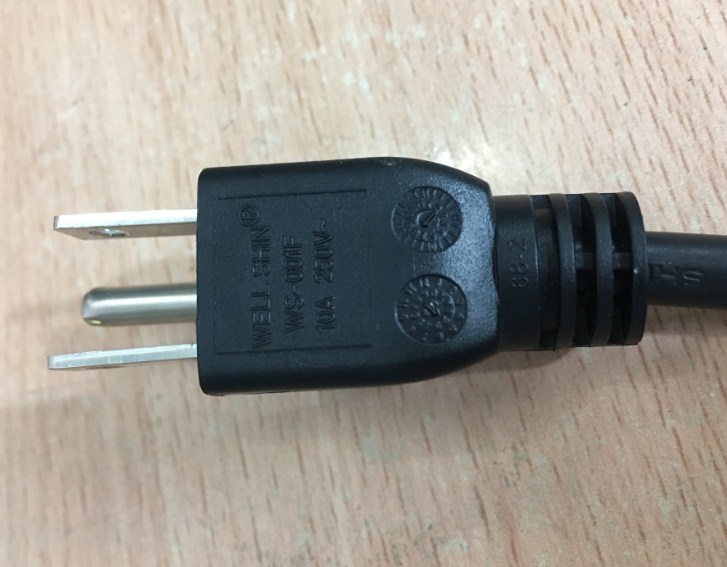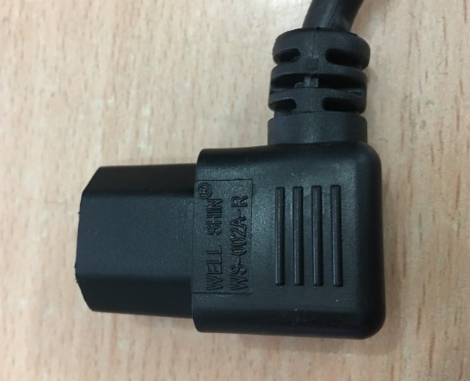 Dây nguồn 3 Chấu 2 Chân Dẹt 1 Tròn Chữ L Ngóc 90 Độ Vuông Sang Góc Phải AC NEMA 5-15P to C13 RIGHT ANGLE WELL SHIN WS-001F WC-002A-R 10A 250V 3x0.75mm length 1.8M là dòng dây nguồn phích cắm điện 3 chân chuẩn Hoa Kỳ Nema 5-15P đến IEC C13 kết hợp với C14, thường được tìm thấy trên các bộ nguồn máy tính và thiết bị mạng. Cáp dùng cho, PC, UPS, màn hình, máy quét, máy in và các thiết bị tương tự như PLC, CNC, máy ATM, máy xét nghiệm. Cáp này có đầu cắm Nema 5-15P tiêu chuẩn, nối đất ở một đầu và đầu nối IEC 60320 C13 ở đầu kia. Chỉ cần kết nối đầu nối C13 nữ với đầu nối C14 nam trên thiết bị của bạn, sau đó cắm đầu nối Nema vào ổ cắm điện AC gần đó, UPS hoặc nguồn điện AC. Chiều dài 1.8M cho phép bạn linh hoạt tuyệt vời trong việc đặt thiết bị đối với ổ cắm điện.