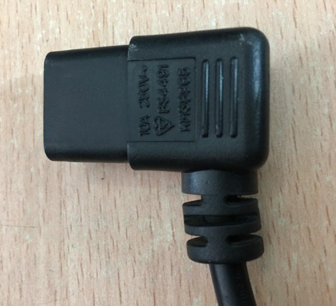 Rắc cắm thiết bị B: IEC 320 C13 chân cắm thẳng chữ L 90 độ vông sang góc phải