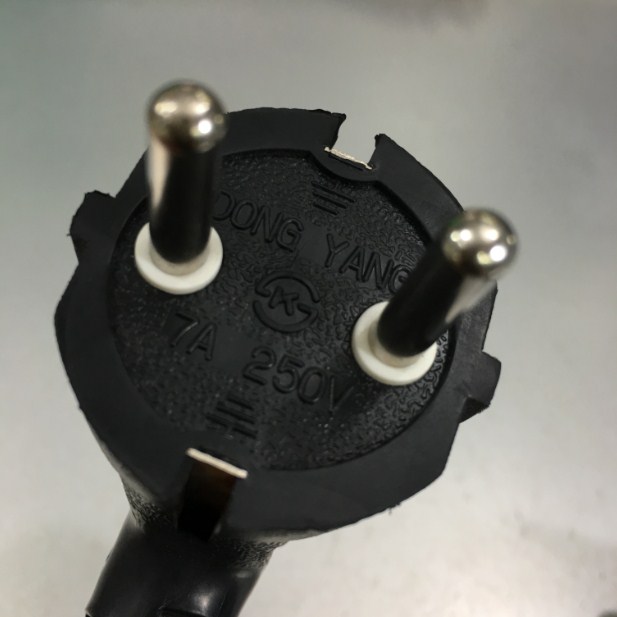Phích cắm điện A: Dây nguồn 2 chân tròn có tiếp địa chân cắm thẳng 7A 250V
