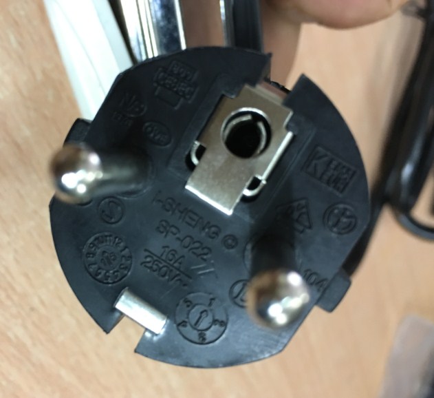 Phích cắm điện A: Dây nguồn 2 chân tròn có tiếp địa chân cắm thẳng