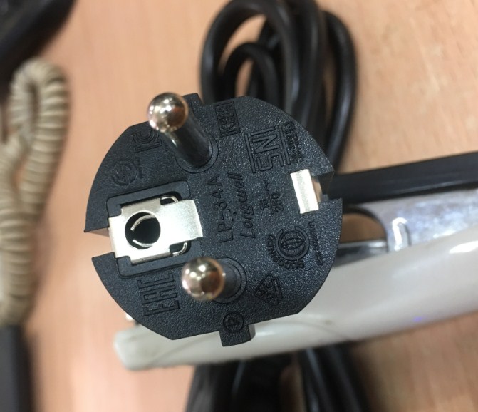 Phích cắm điện: Dây nguồn 2 chân tròn có tiếp địa chân cắm thẳng