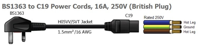 1 - BS1363 IEC60320 C19 UK |