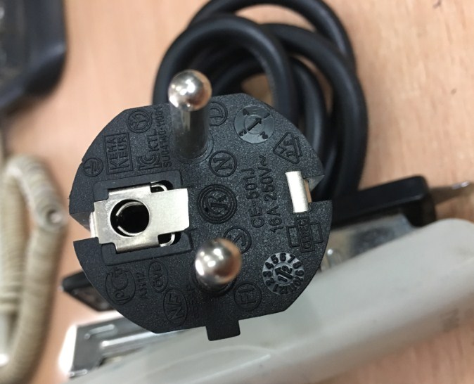 Phích cắm điện: Dây nguồn 2 chân tròn có tiếp địa chân cắm thẳng
