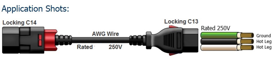 Loại sản phẩm: Dây Nguồn Có Khoá Chốt Lẫy Chính Hãng WELL SHIN WS-002A-4 WS-003-5 AC Power Cord IEC60320 C13 Locking to IEC60320 C14 Locking 10A 250V 3x1.04mm² 17AWG Length 0.7M