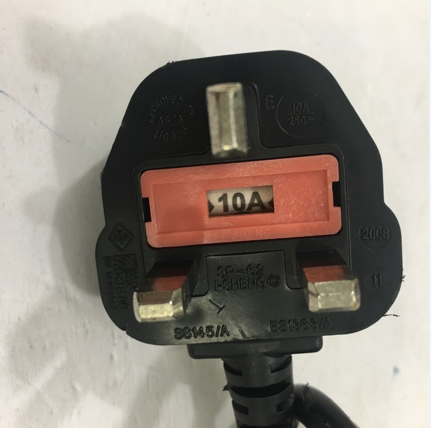 Loại sản phẩm: Dây Nguồn I-SHENG SP-62 IS-14 UK Chuẩn 3 Chấu Có Cầu Chì AC Power Cord BS1363 to C13 10A 250V 3X0.75mm² Length 1.8M