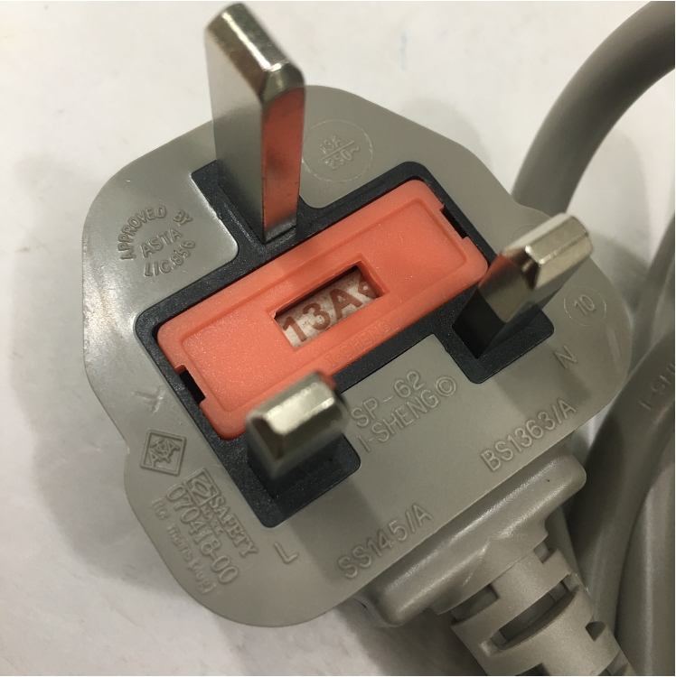 Loại sản phẩm: Dây Nguồn I-SHENG SP-62 IS-14 UK Chuẩn 3 Chấu Có Cầu Chì AC Power Cord BS1363 to C13 10A 250V 3X1.0mm² For Thiết Bị Y Tế Thiết Bị Mạng Cisco Và Máy Chủ Grey Length 2M