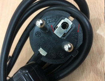 Phích cắm điện: Dây nguồn 2 chân tròn có tiếp địa chân cắm bị vuông góc L 90 độ